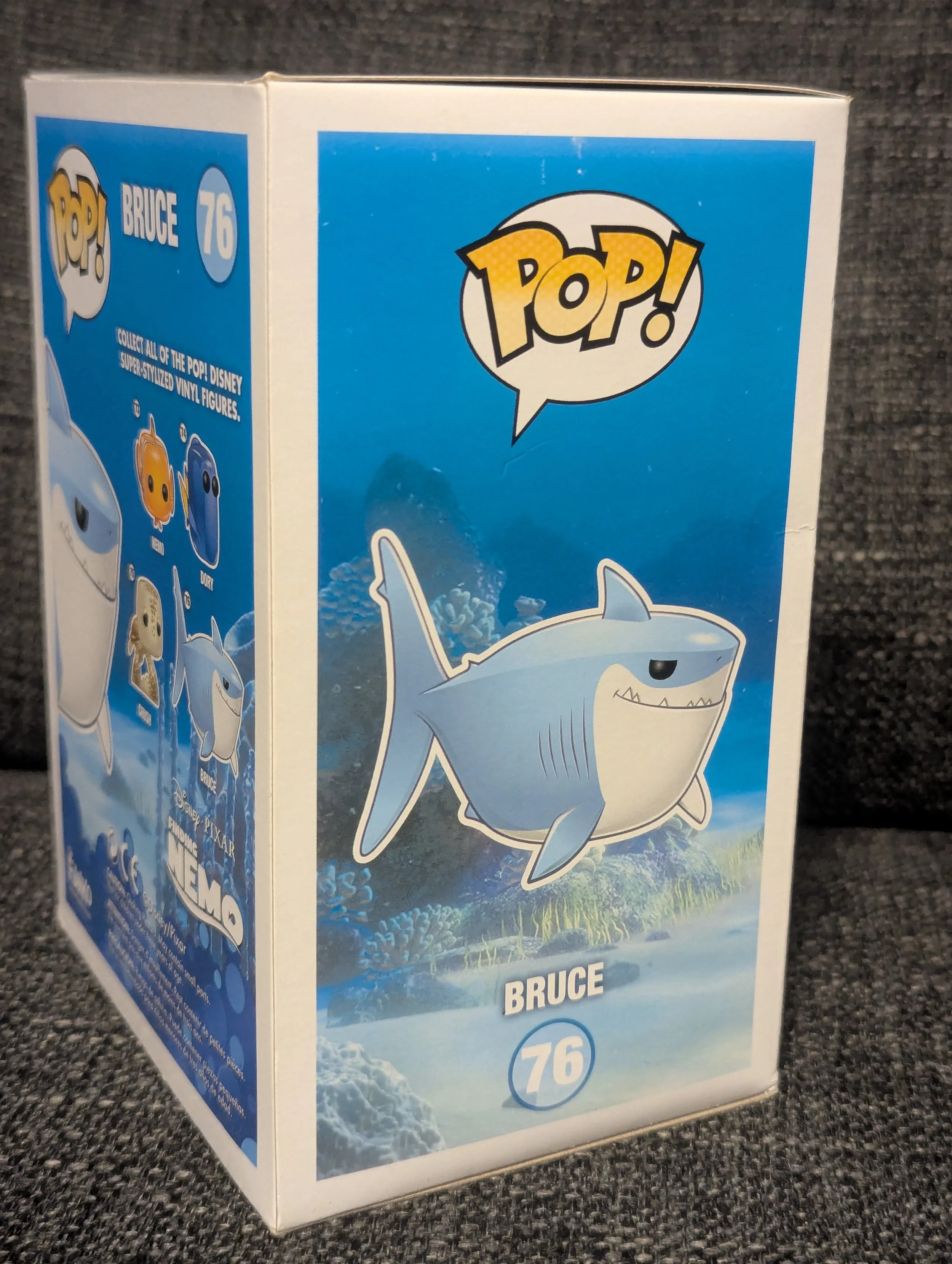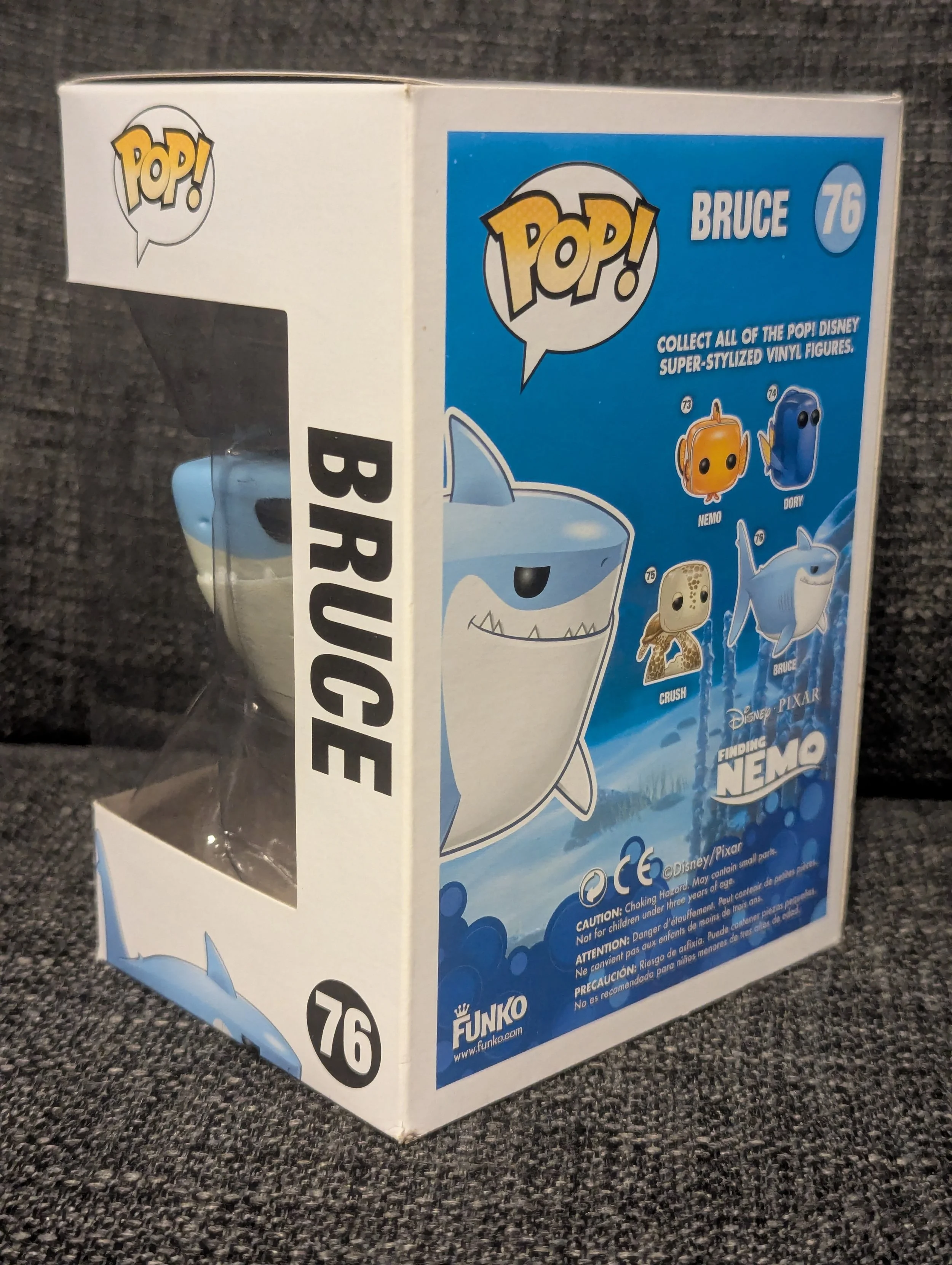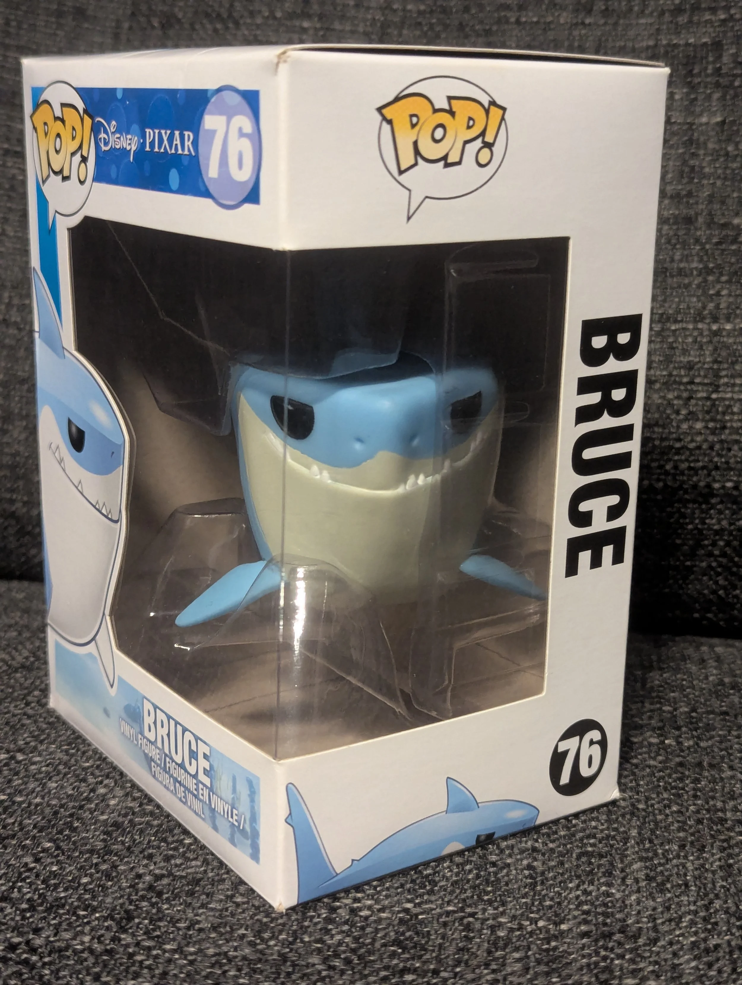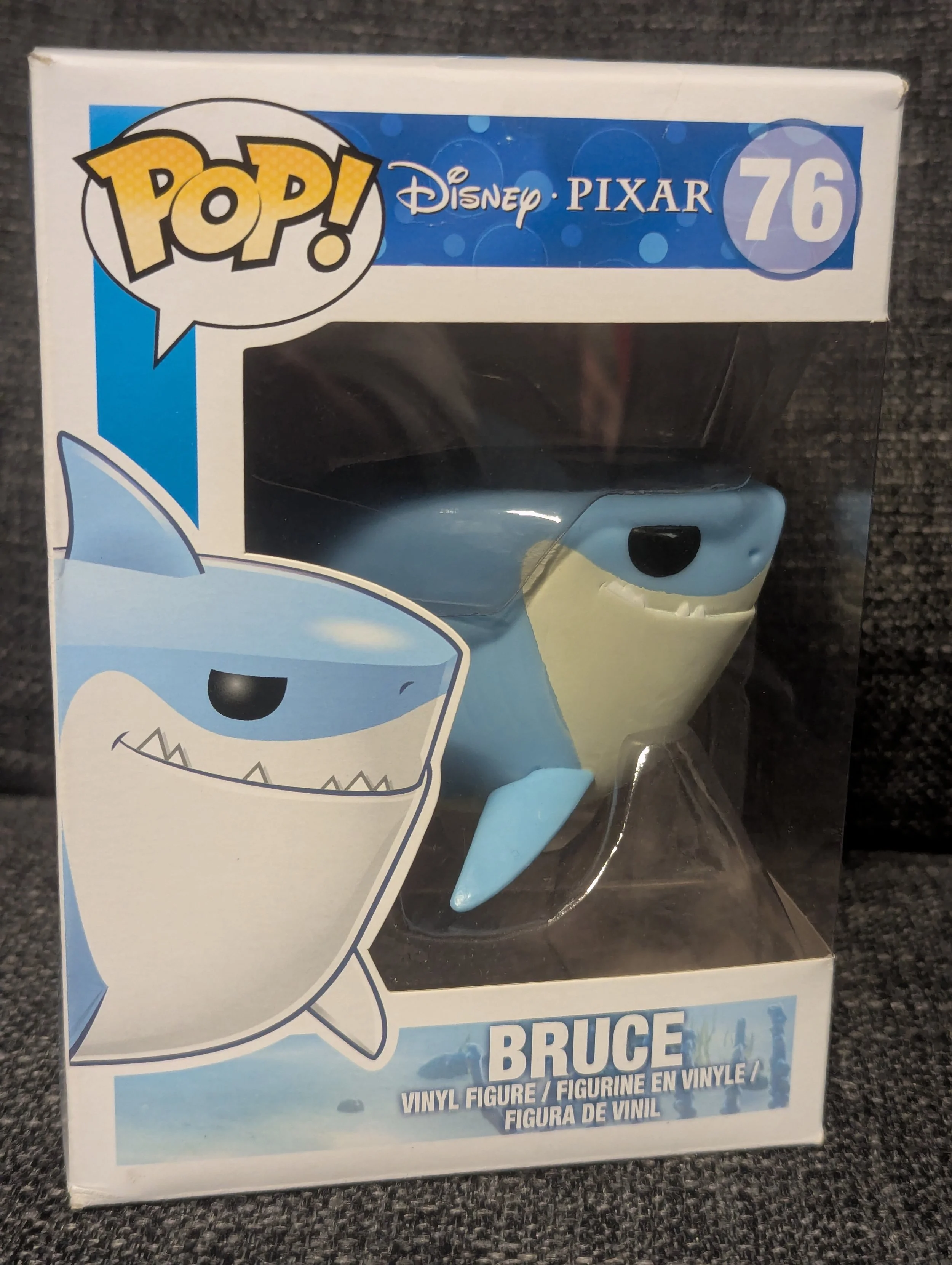 Swim back to the early days of Funko with this Bruce Funko Pop! #76, released in 2013 and based on the iconic character from Finding Nemo by Pixar / Disney.
