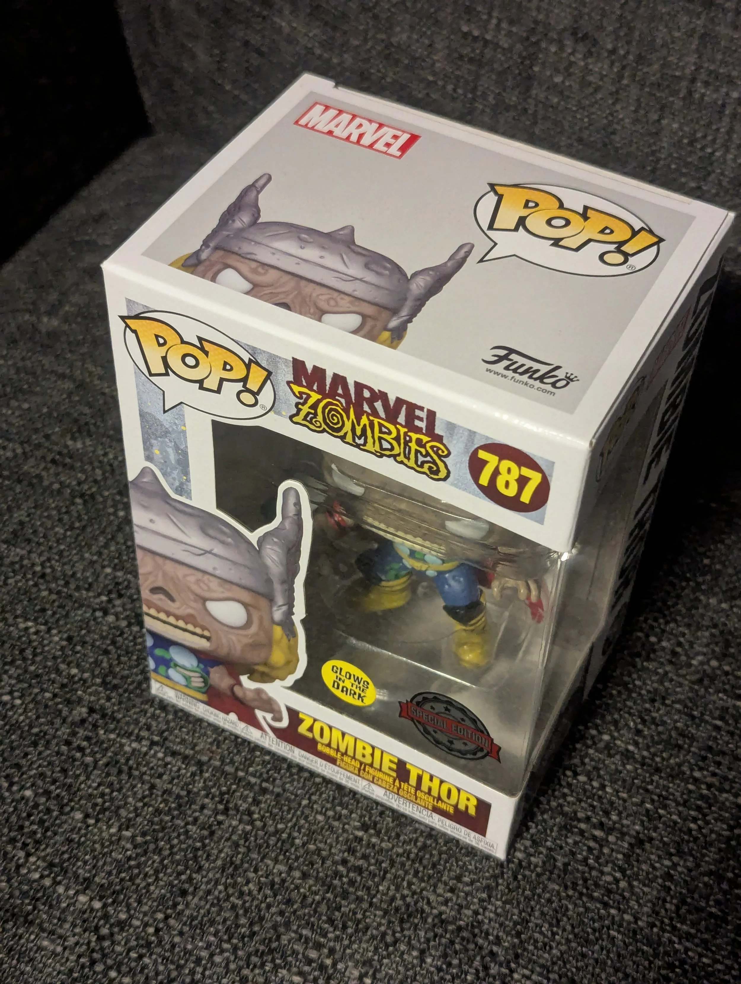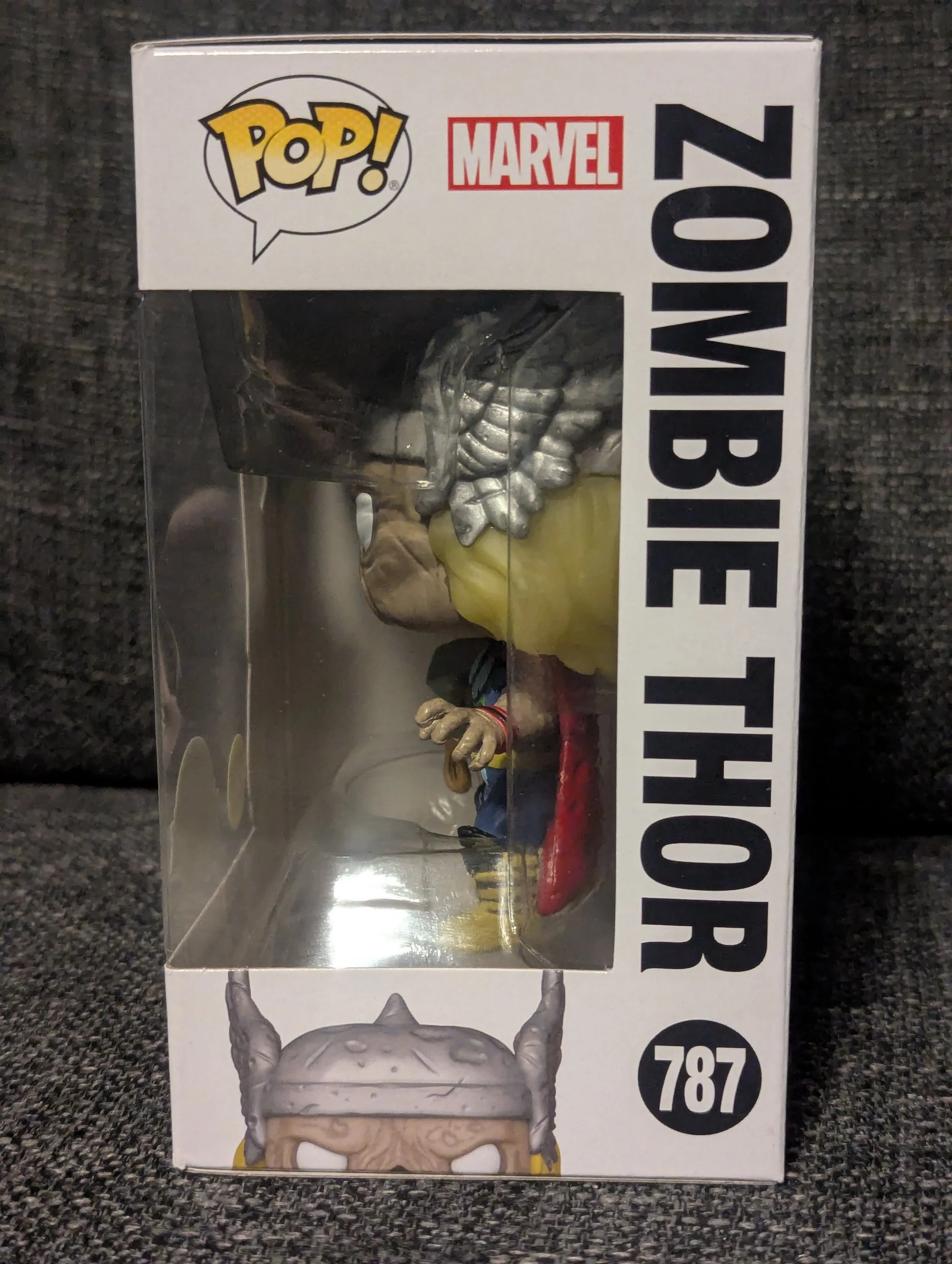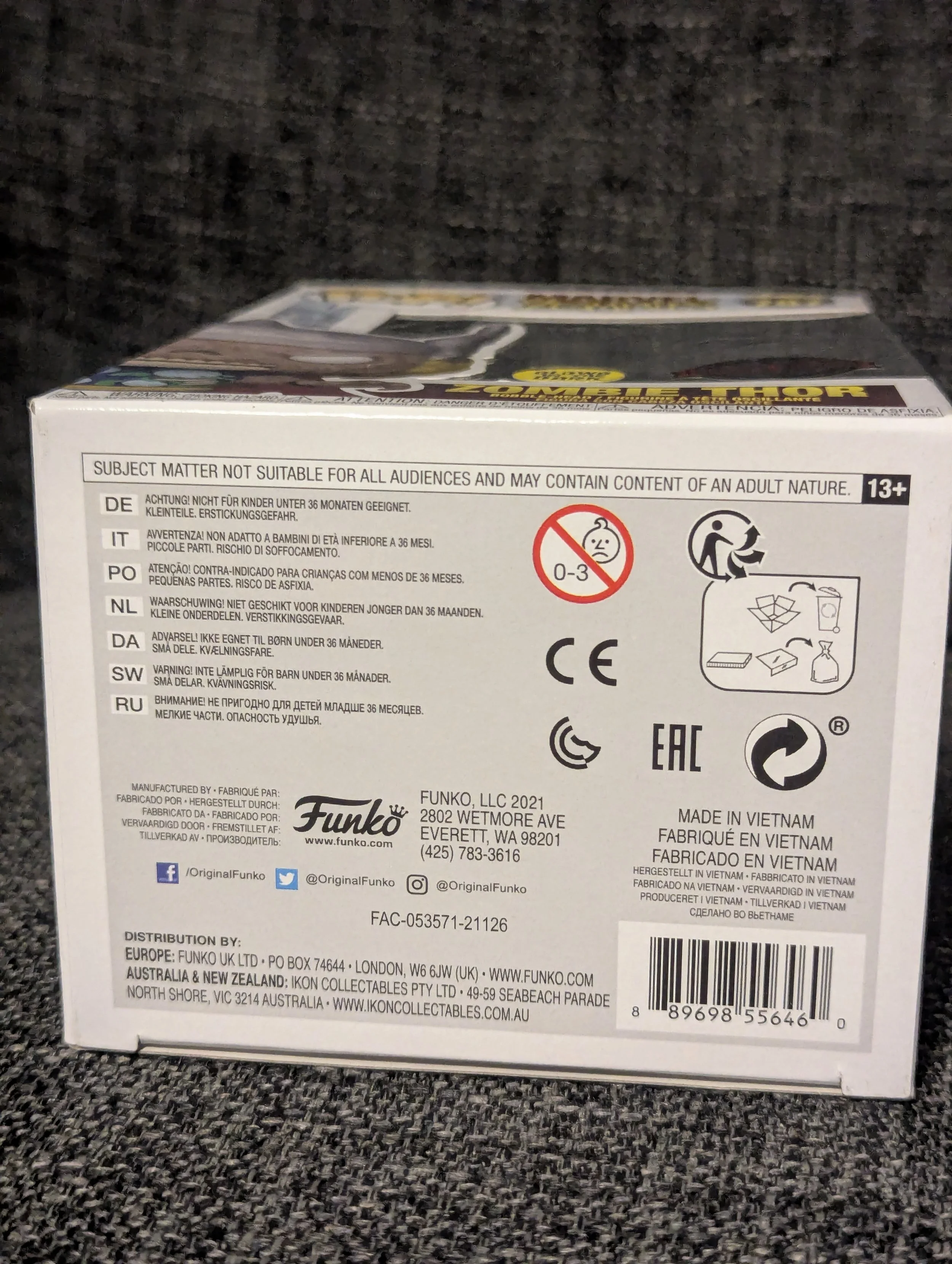 Bring the undead version of the God of Thunder to your collection with this Zombie Thor Glow in the Dark Funko Pop! #787. Inspired by the dark and twisted world of Marvel Zombies, this Pop features Thor in his zombified form with incredible detailing and a Glow in the Dark (GITD) effect that makes it stand out even more on display.