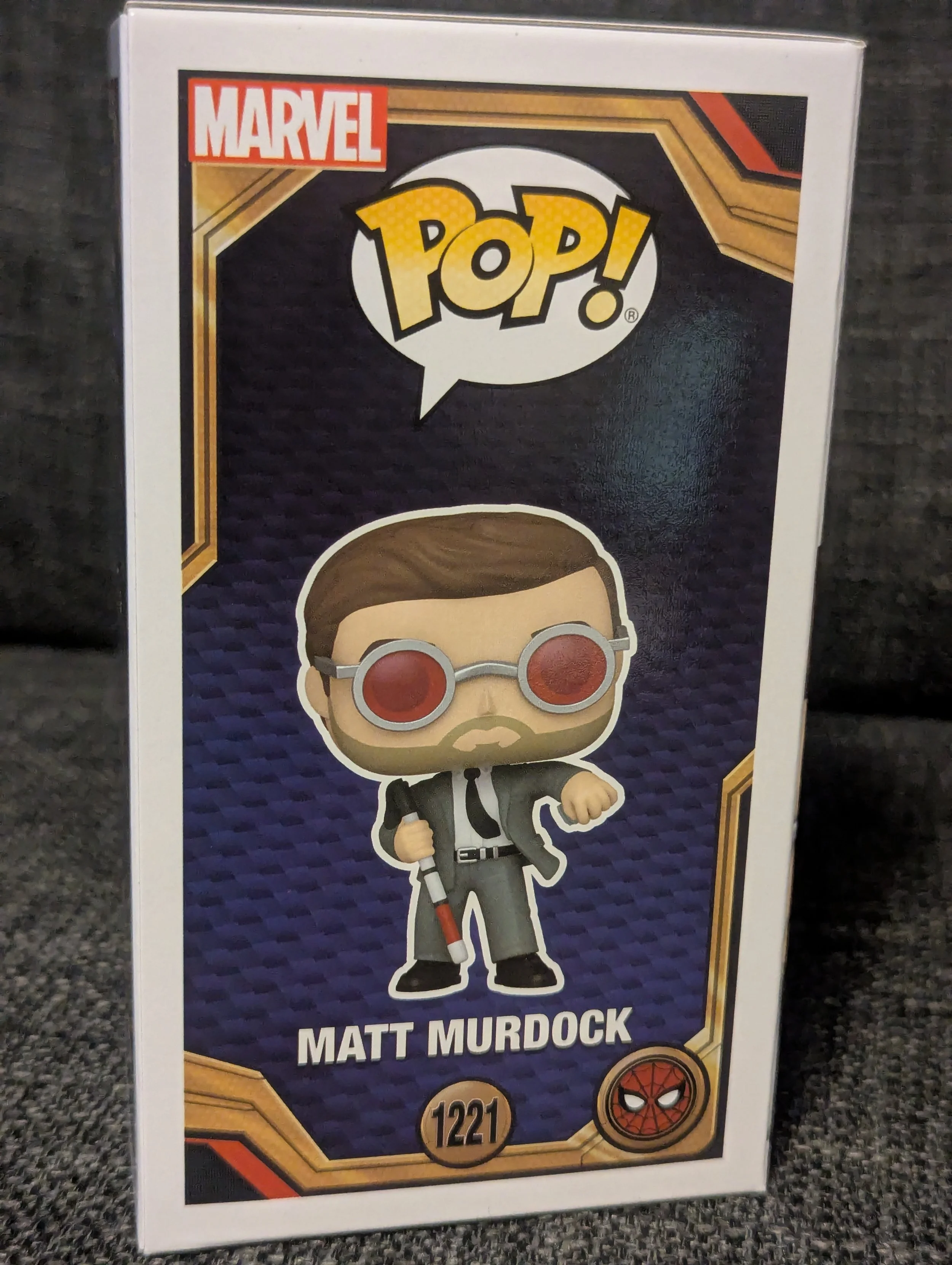 Add a fantastic Marvel collectible to your shelf with this Matt Murdock Funko Pop! #1221, an Entertainment Earth Exclusive. Featuring the iconic lawyer alter ego of Daredevil in his signature suit and red glasses, this Pop is a great addition for Marvel fans and collectors alike.