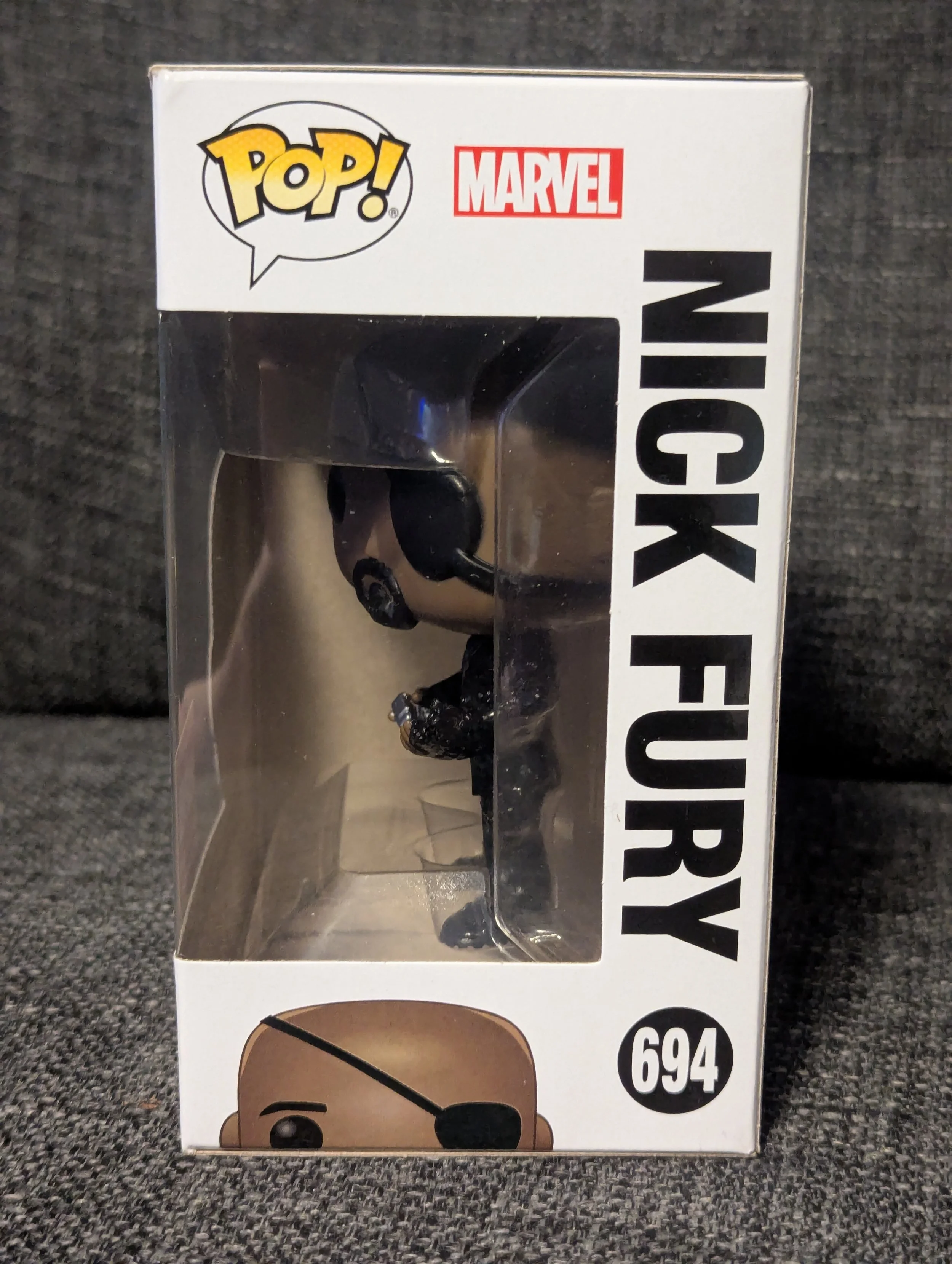 Add the ultimate strategist of S.H.I.E.L.D. to your Marvel collection with Nick Fury Funko Pop! #694. Featuring the iconic eyepatch and classic suit, this Pop captures the no-nonsense leader who keeps the Avengers in line.