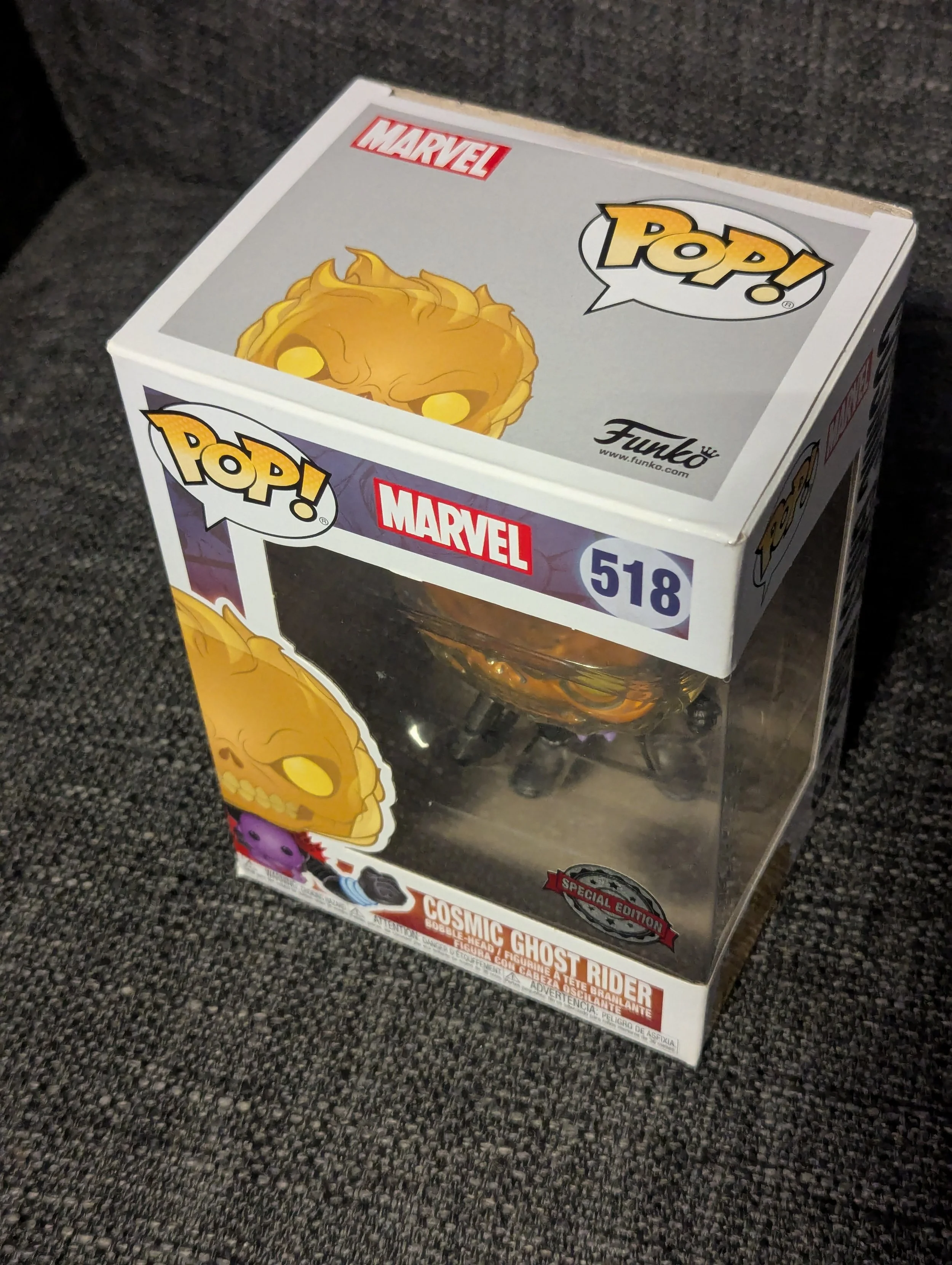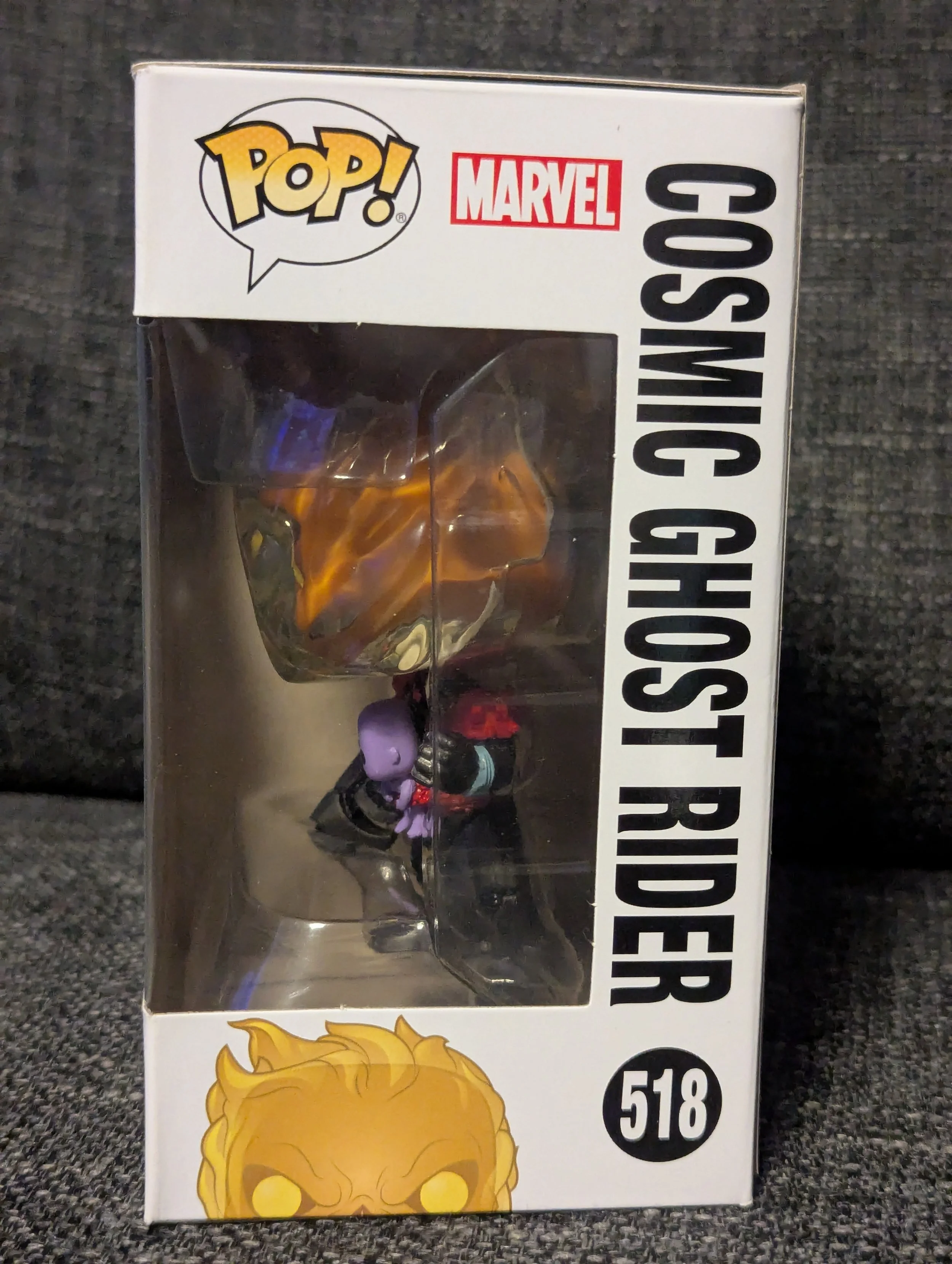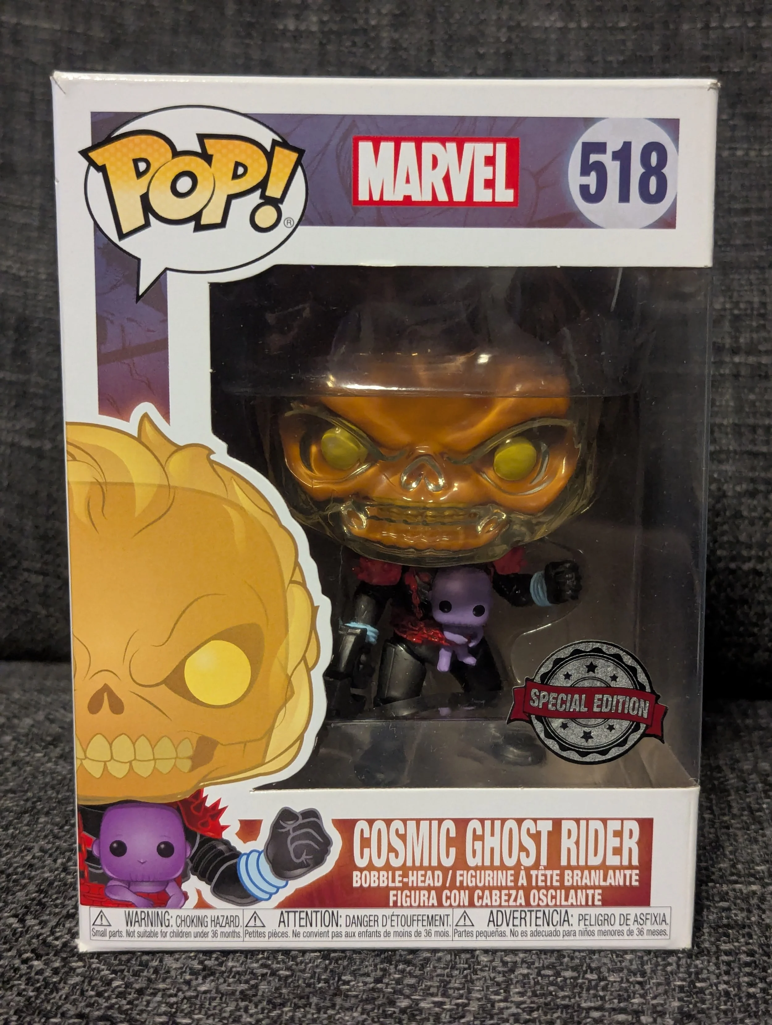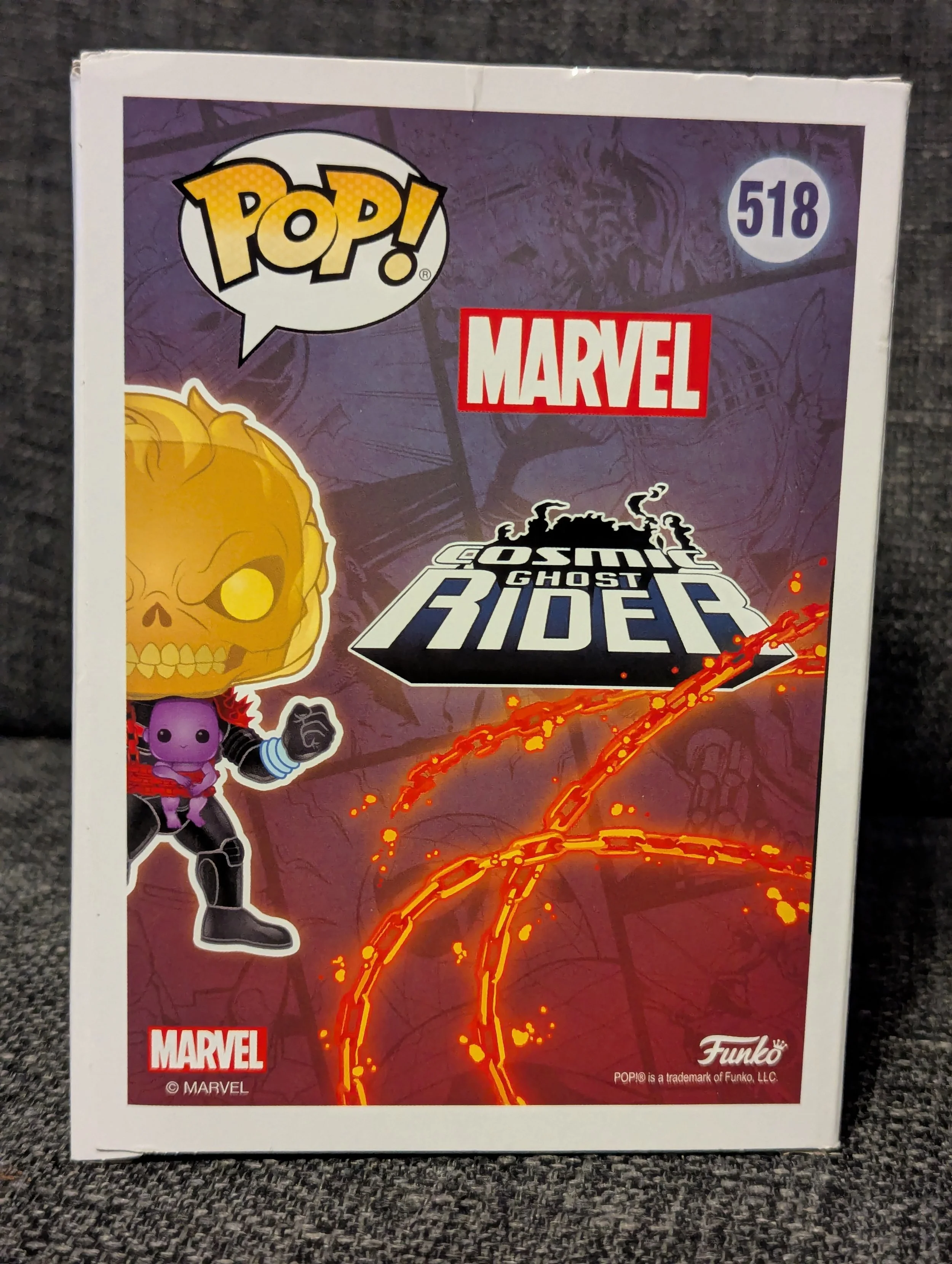 Add a powerful and unique Marvel character to your collection with Cosmic Ghost Rider Funko Pop! #518. Combining the look of the Spirit of Vengeance with cosmic power, this Pop features incredible detailing and is a standout piece for Marvel fans and collectors.