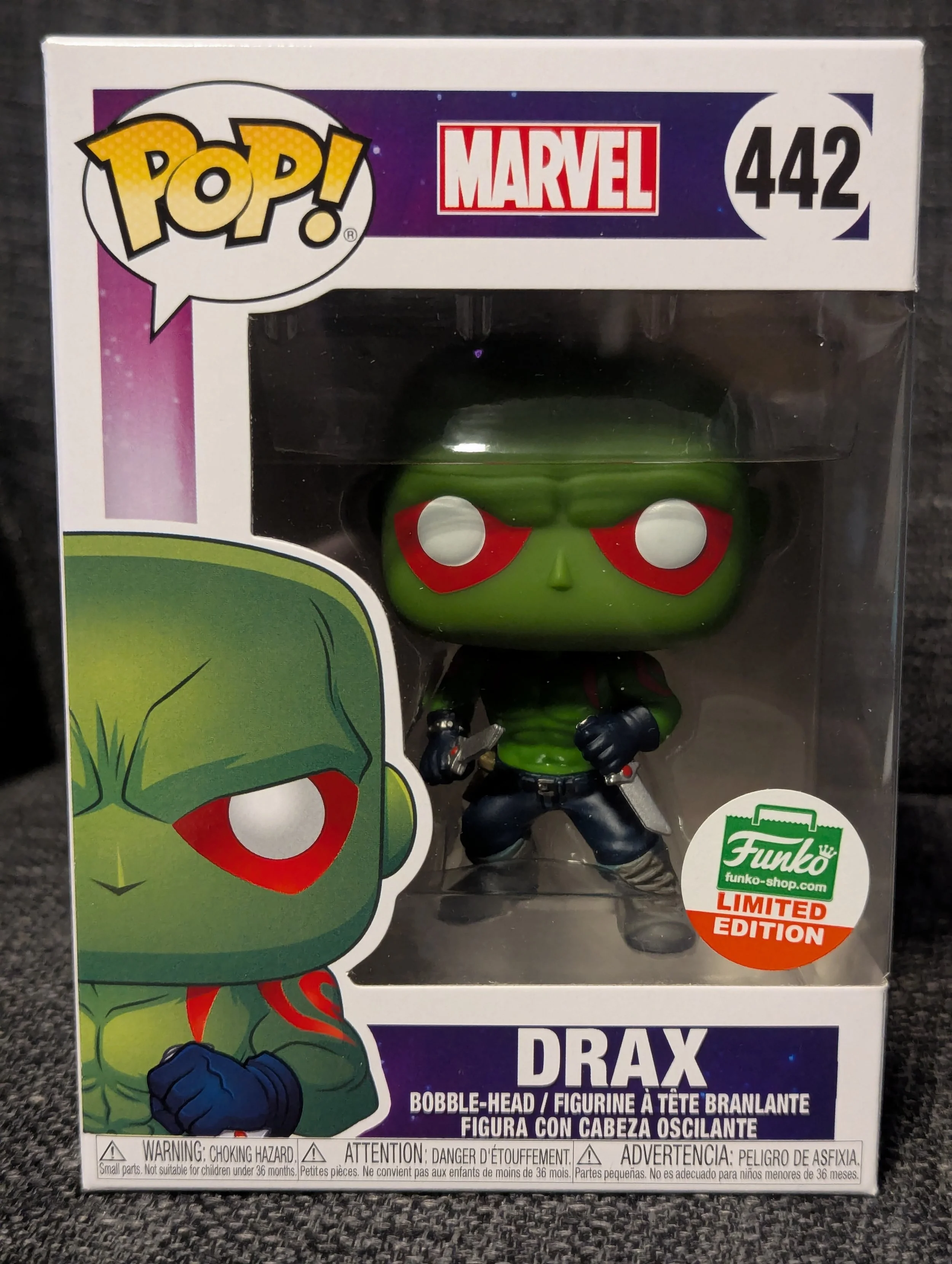 Add one of the galaxy’s toughest warriors to your collection with Drax Funko Pop! #442. Inspired by the fan-favourite character from Guardians of the Galaxy, this Pop captures Drax’s distinctive look and makes a great addition to any Marvel display.