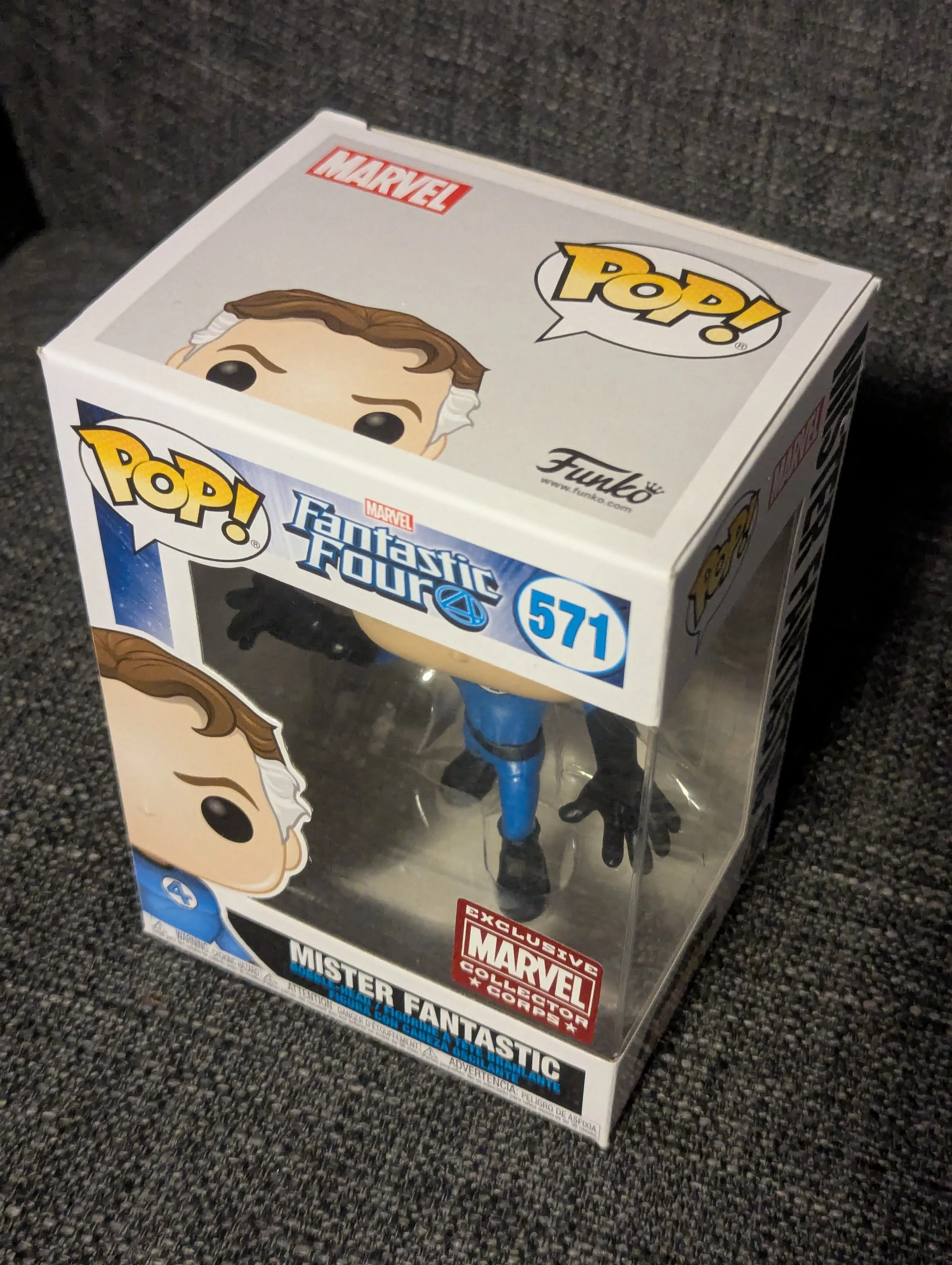 Add the brilliant leader of the Fantastic Four to your collection with this Mister Fantastic Funko Pop! #571, a Collector Corps Exclusive. Featuring Reed Richards in his classic blue Fantastic Four suit with his signature stretching ability, this Pop is a fantastic addition for Marvel fans and collectors.