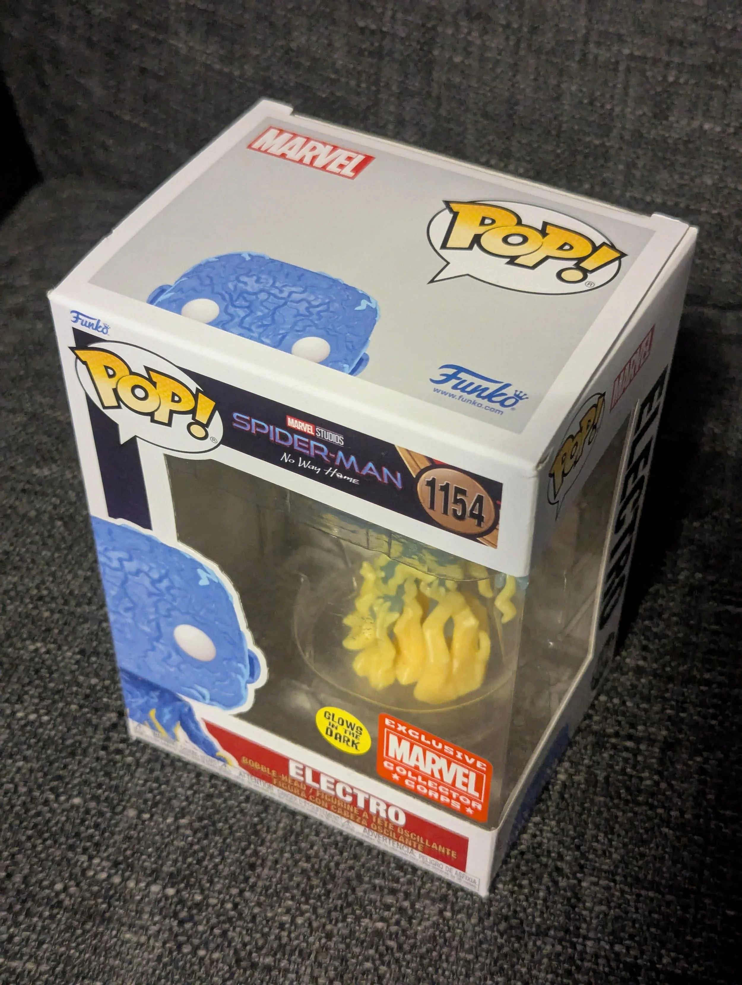 Add a powerful Spider-Man villain to your collection with this Electro Funko Pop! #1154, a Collector Corps Exclusive. Featuring the electrifying supervillain in his distinctive comic-inspired look, this Pop makes a great addition to any Marvel or Spider-Man display.