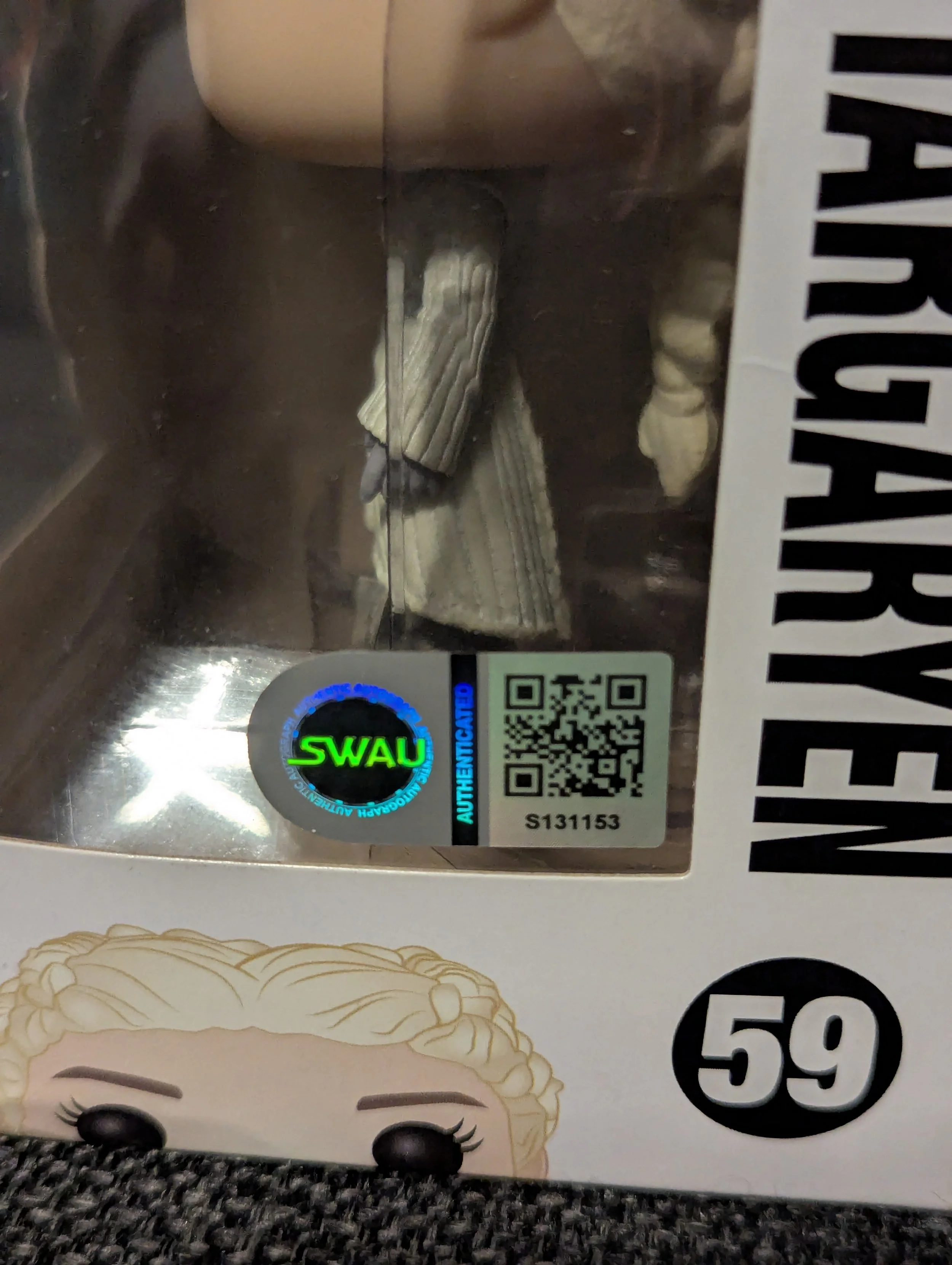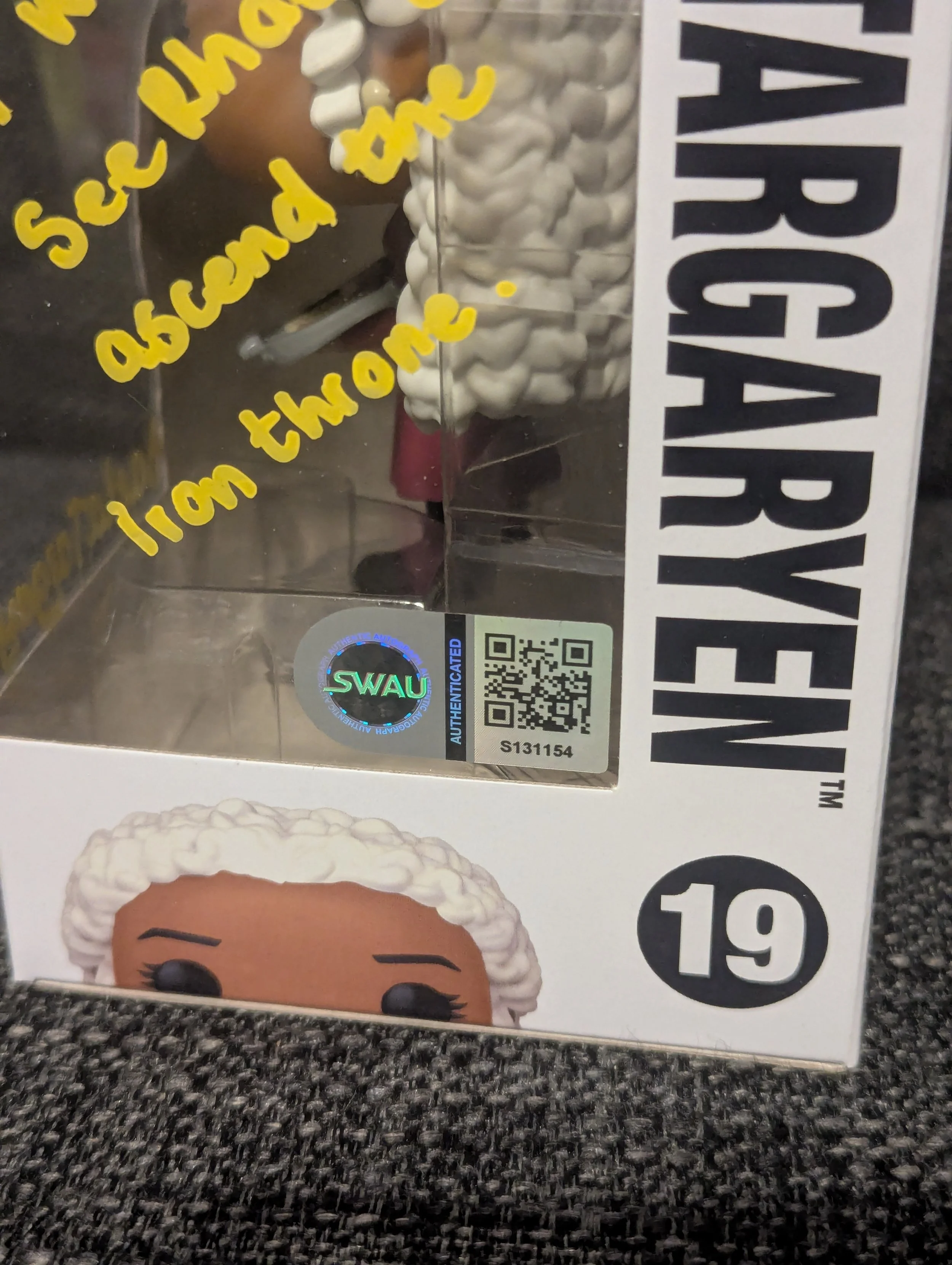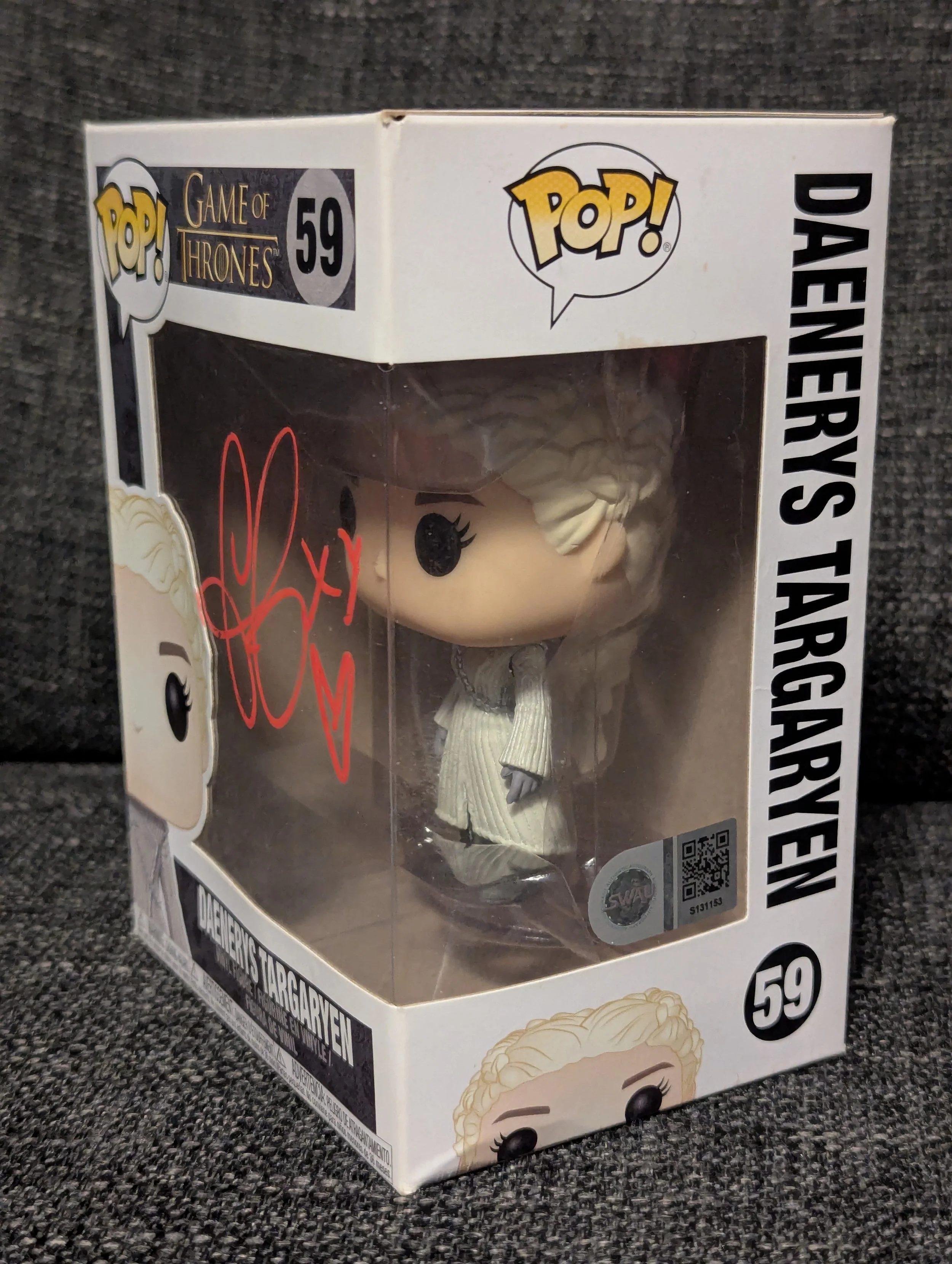 Featuring Daenerys Targaryen Funko Pop! #59, personally hand-signed by Emilia Clarke, the iconic Mother of Dragons from Game of Thrones.