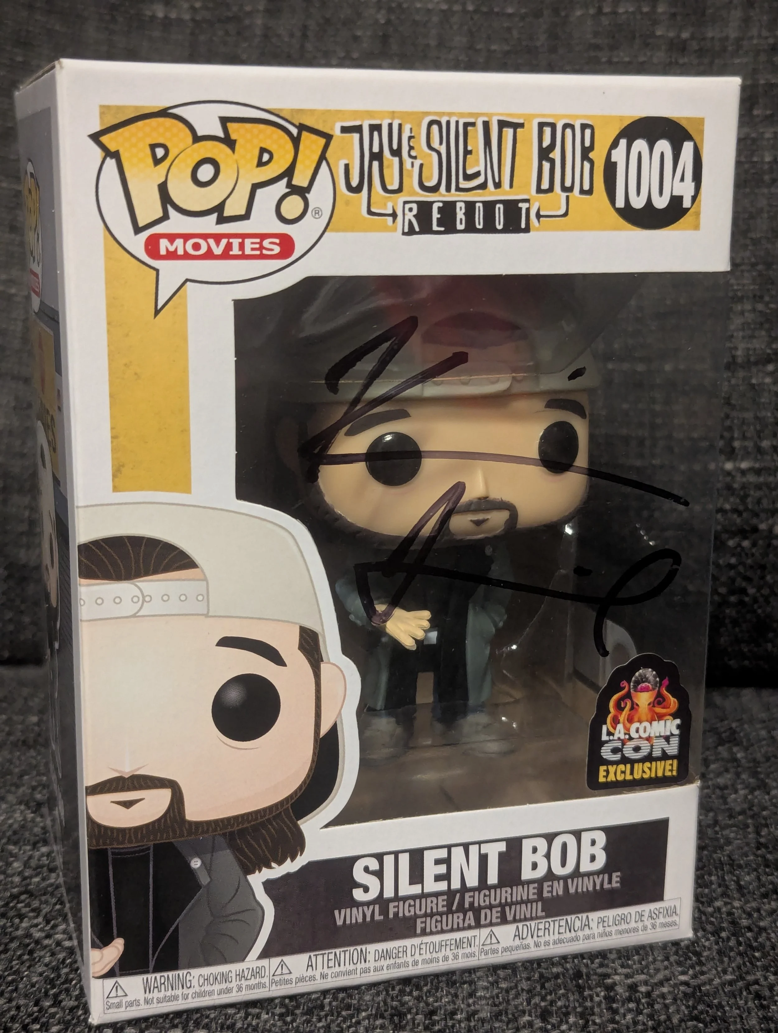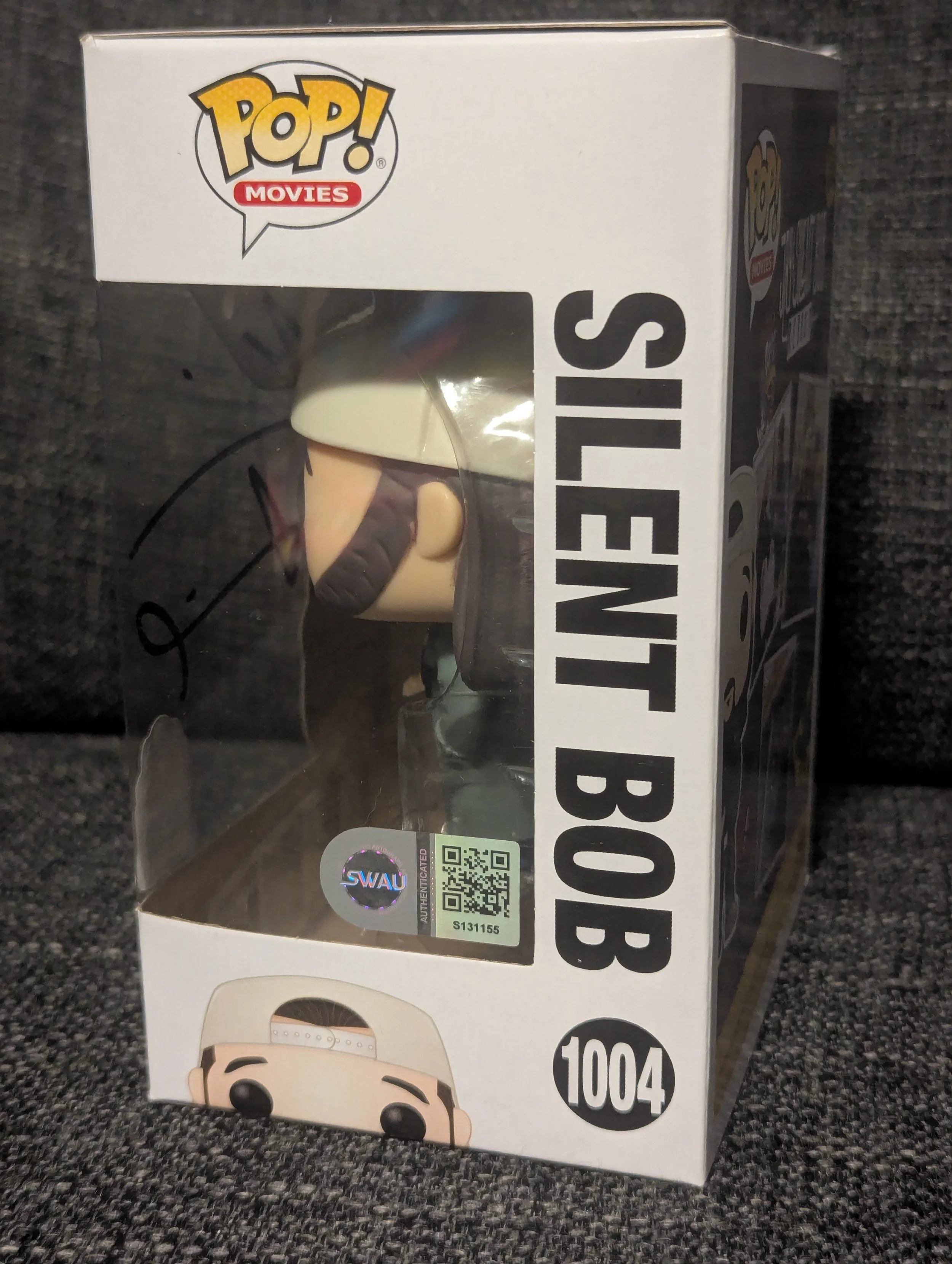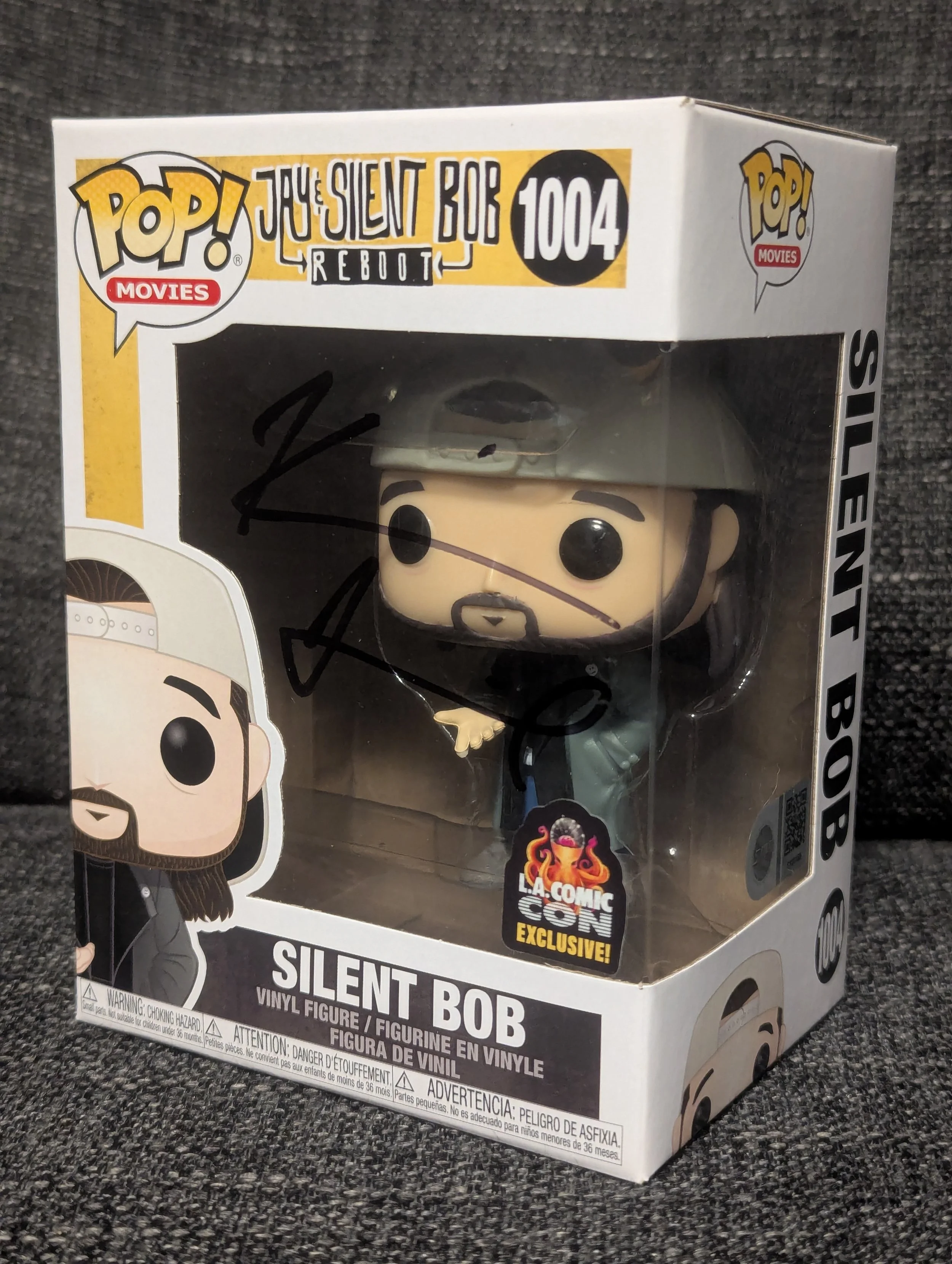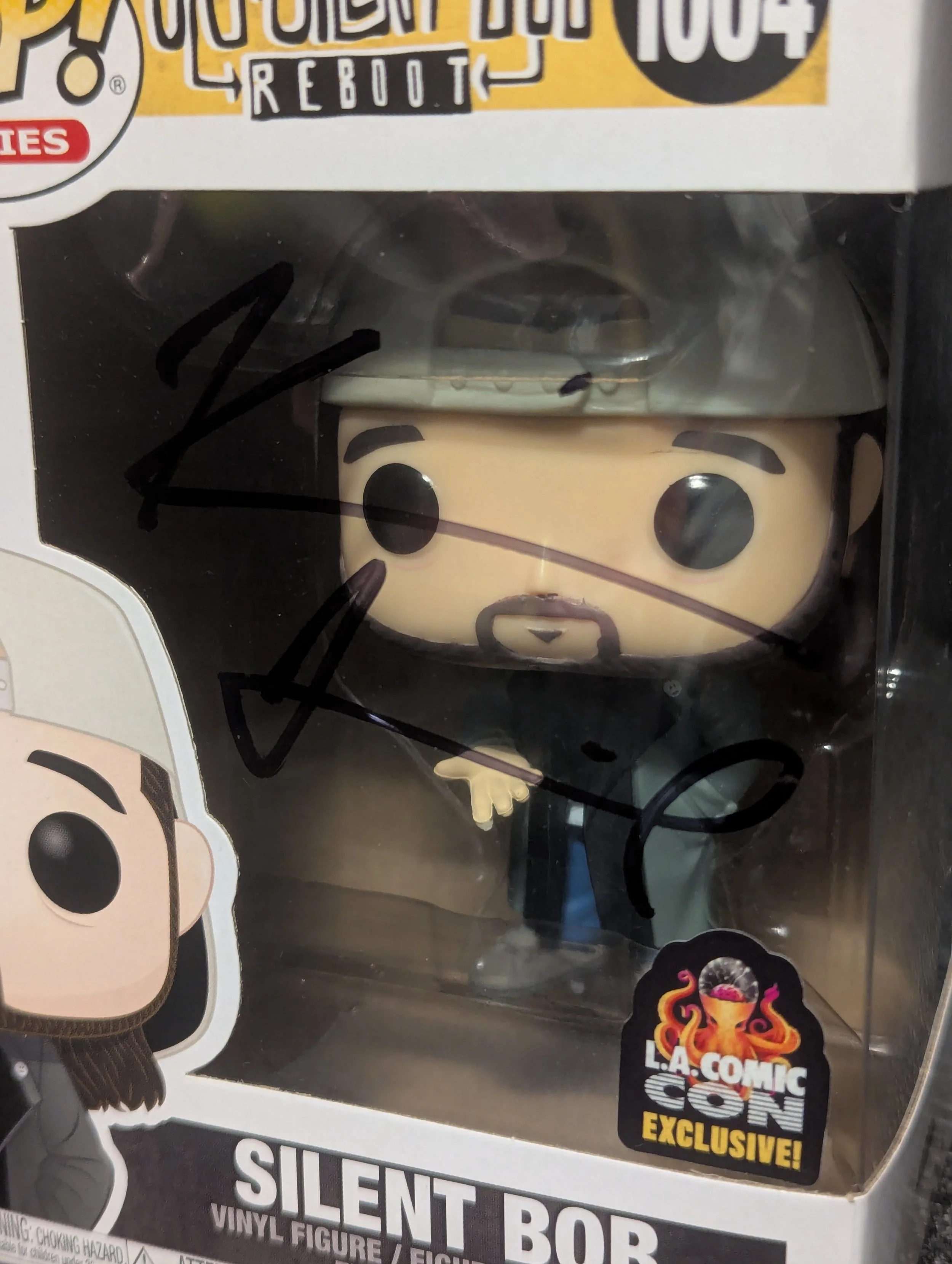 A must-have for fans of cult cinema, this Jay and Silent Bob – Silent Bob Funko Pop! #1004 has been hand-signed by Kevin Smith, the legendary filmmaker, writer, and actor behind the iconic duo and the View Askewniverse.