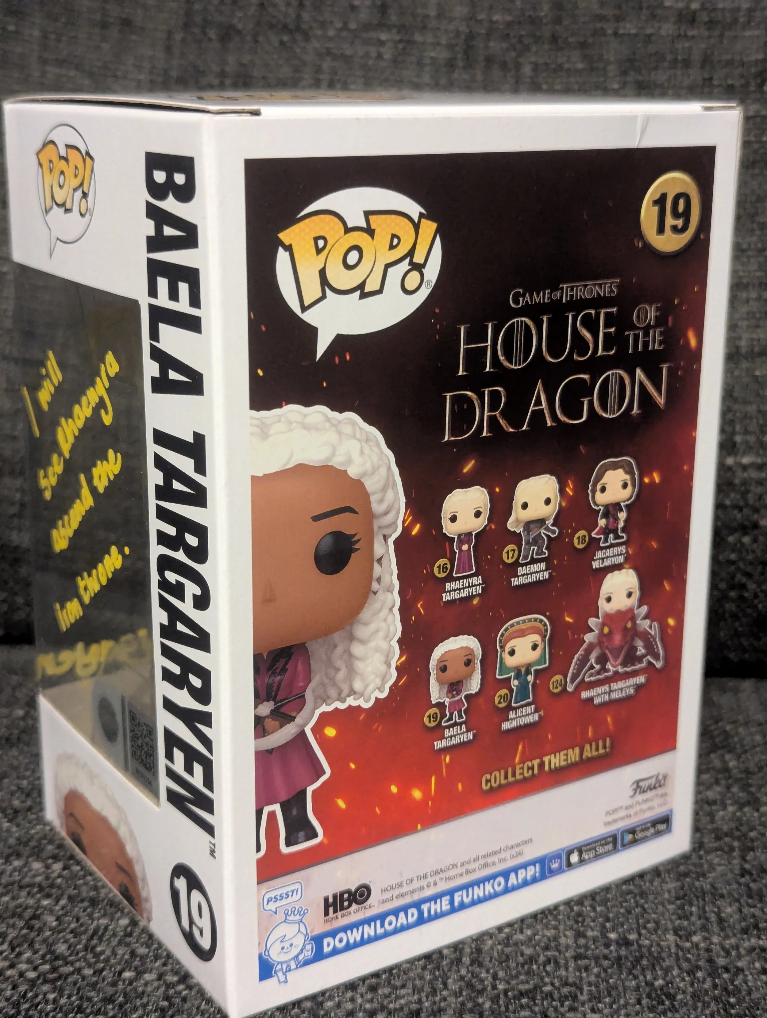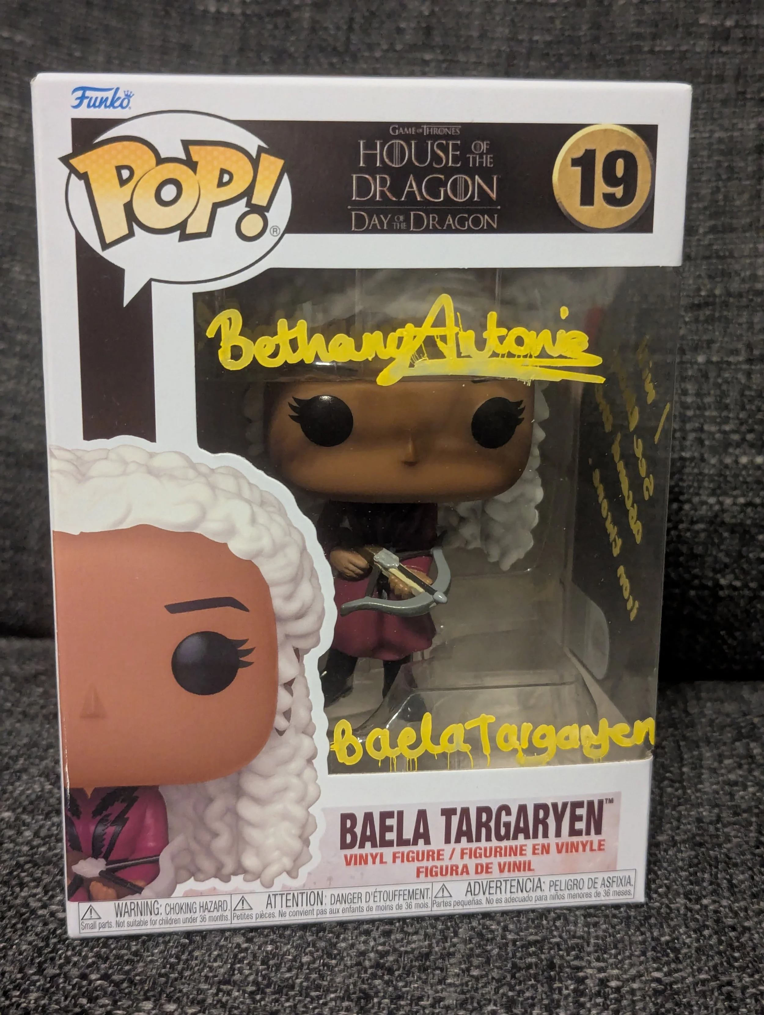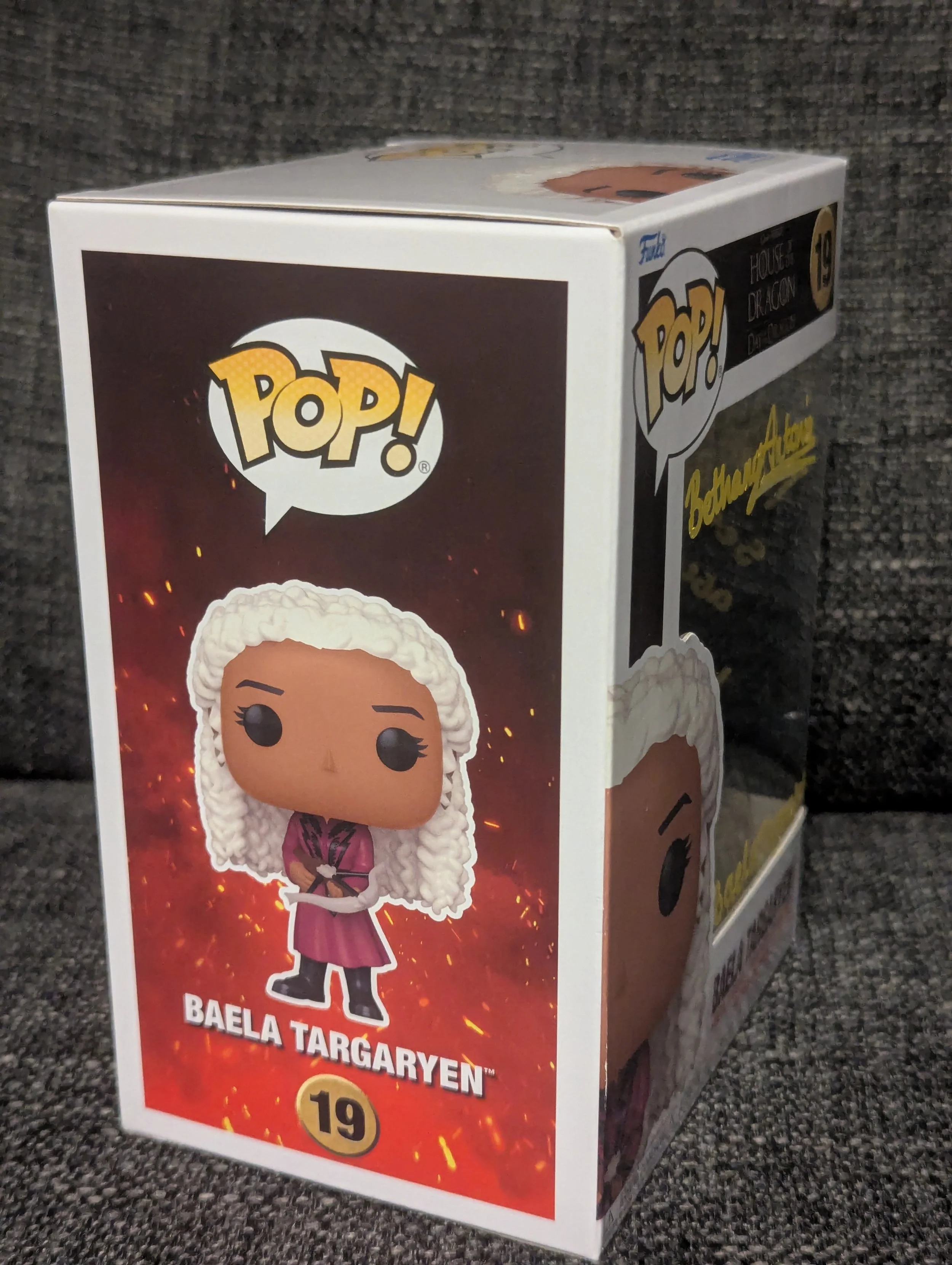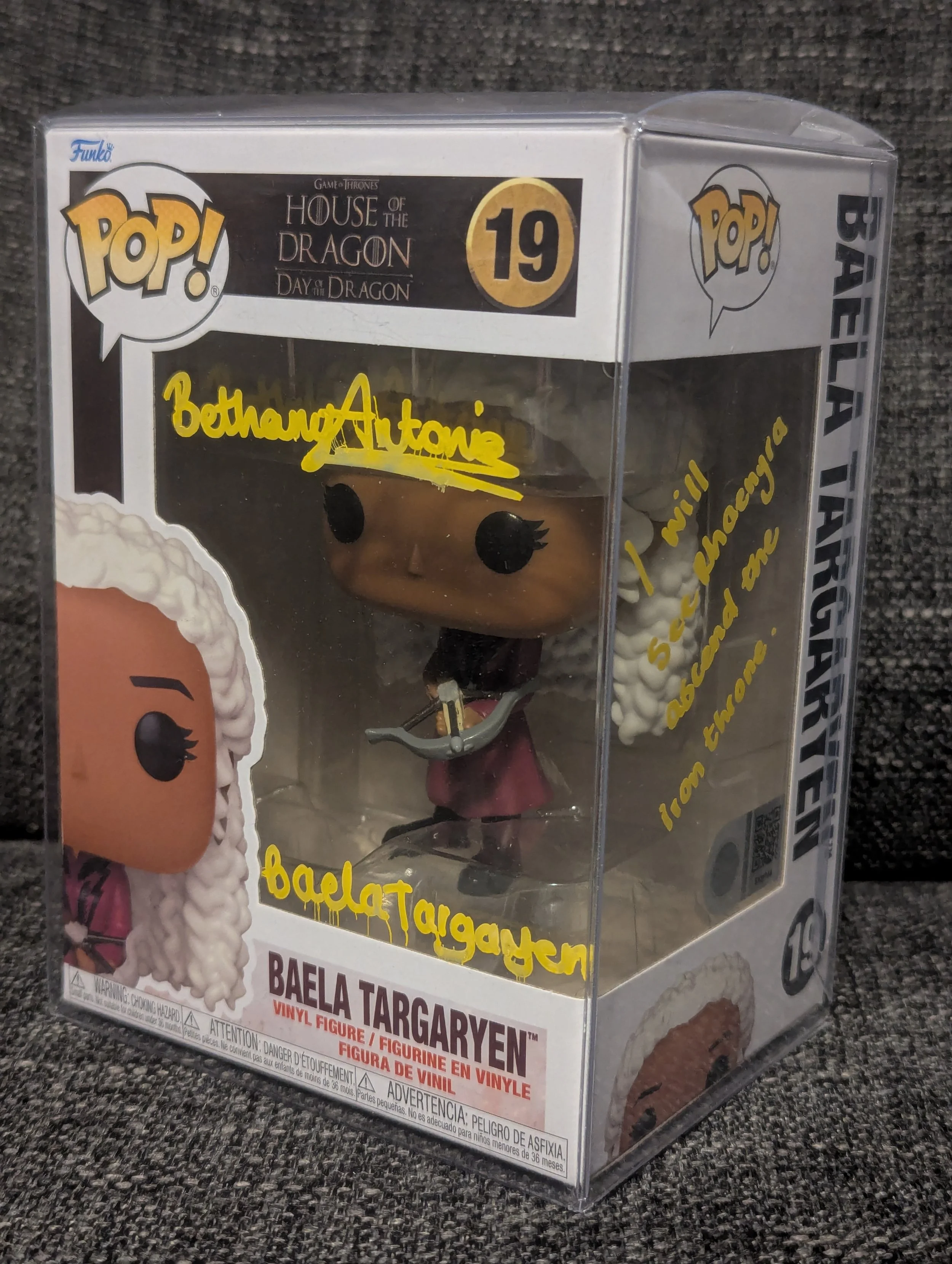Prepare your collection for the return to Westeros with this House of the Dragon – Baela Targaryen Funko Pop! #19, signed & quoted by Bethany Antonia, who portrays Baela Targaryen in HBO’s hit series House of the Dragon.